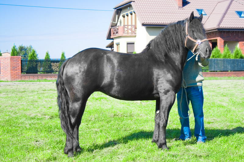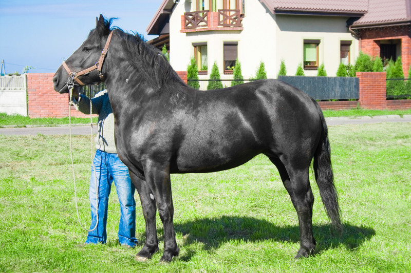 OPIS: Klacz bardzo spokojna, rasa zimnokrwista, maść kara. Zaźrebiona 4 miesiące.